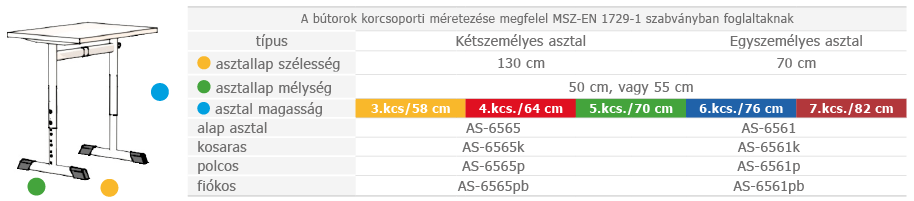 AS-6561 3.-7. korcsoporti méretben állítható magasságú asztal AS-7100Flex 3.-4.-5. korcsoporti magasságban állítható szék