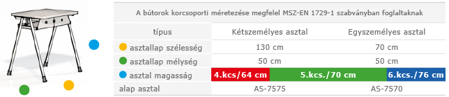 Vázszerkezet: Csővázas tanulói asztal. Az önhordó vázszerkezet asztallap-alátámasztó merevítővel. Lábszerkezet fixen hegesztve, elektrosztatikus porszórással felület kezelve.