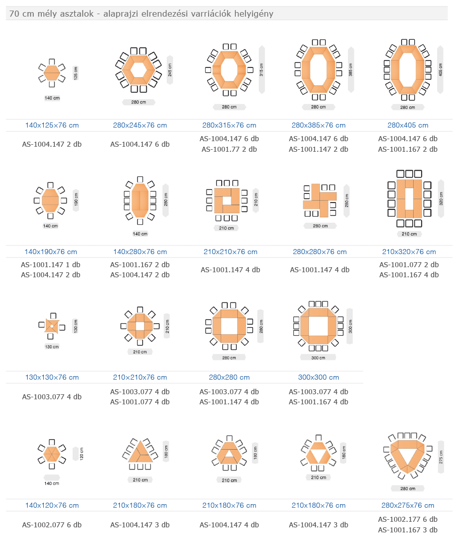 MODUL SYSTEM asztalok elrendezési vázlatok - méretek
